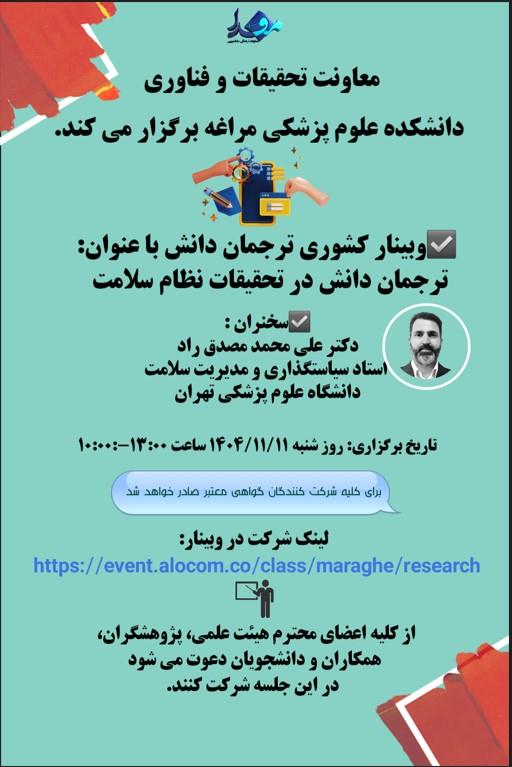 ترجمان دانش یکی از مفاهیمی است که با کاربرد دانش در بالین ارتباط نزدیک دارد و امروزه به کرات در مقالات علوم سلامت به چشم می خورد. ویژگی های اصلی مفهوم ترجمان دانش شامل, تاکید بر کاربرد دانش تحقیقات در عمل, مشارکت مداوم تولیدکنندگان و کاربران دانش و در نهایت تعاملی و غیر خطی بودن است. بر اساس یافته ها, ترجمان موفقیت آمیز دانش پیامدهایی چون ارتقای سطح سلامت جامعه, ارایه موثرتر خدمات سلامت, بهبود عملکرد بالینی و تقویت نظام مراقبت سلامت, را به دنبال خواهد داشت.